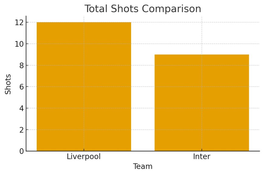 لیورپول در مجموع ۱۲ شوت داشت (۵ شوت در چارچوب)، در مقابل ۹ شوت برای اینتر (۲ شوت در چارچوب).