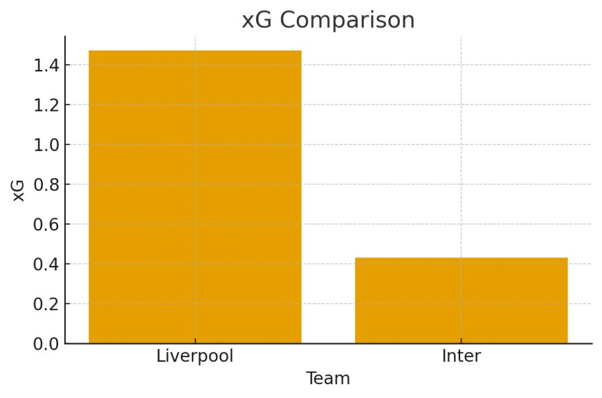 میانگین انتظار گل (xG): لیورپول ۱.۴۷ — که حدود ۰.۷۹ آن مربوط به پنالتی بود — در مقایسه با ۰.۴۳ برای اینتر.